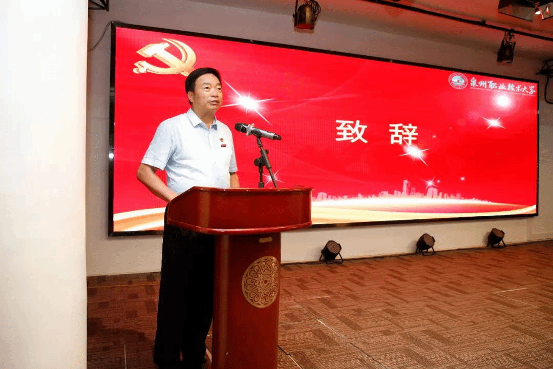 晋江市人民政府黄少伟副市长讲话,他代表晋江市委市政府对泉州职业技术大学的成立表示热烈祝贺。学校辛勤耕耘33年,培养具有晋江基因的创业型人才和社会急需的高层次专业技术技能人才,深受社会欢迎。希望学校认真贯彻落实各级部门关于职业教育的新部署和新要求,不忘初心,牢记使命,切实发挥本科层次职业教育试点学校的引领和示范作用,为泉州、晋江经济社会发展做出更大贡献。