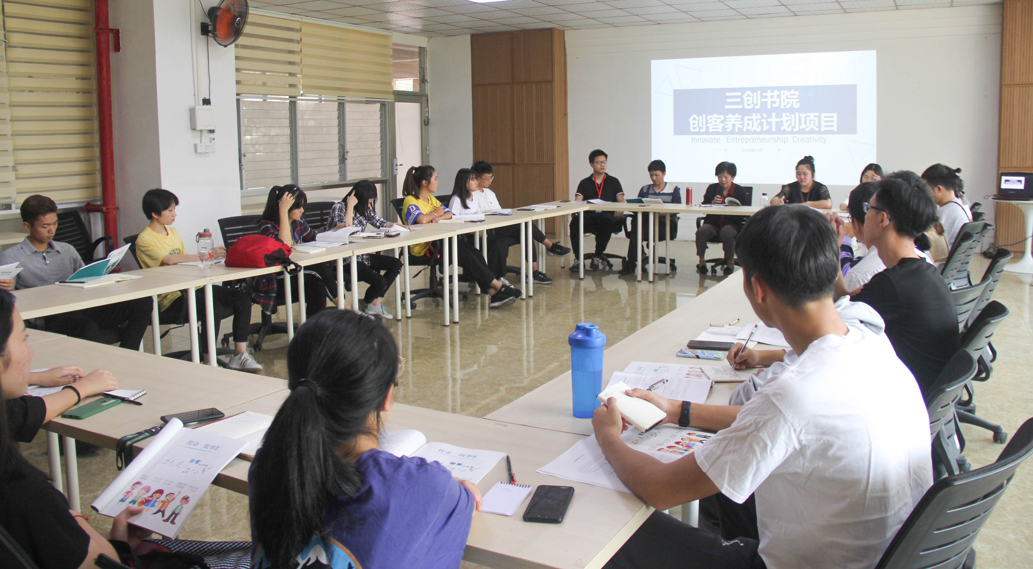 2018年11月8日下午15:00三创书院“创客养成计划”项目首次分享会,在第二会议室举办。规划处赵群老师、三创书院党支部书记王园园老师、海峡两岸三创学院涂永坚老师、谢明强老师、三创书院团总支书记王艳苹老师、三创书院18级辅导员陈芳老师、曾海媚老师参与了此次活动。