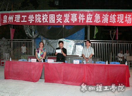 为提高师生的自防、自救、逃生的应变能力,9月27日晚泉州理工学院成功举行了一场旨在应对校园突发事件的大型应急演练。在泉州市丰泽区消防大队官兵的指导协助下,学院200余名师生学习了消防知识讲座,实地参与了消防演练、伤员施救、紧急疏散等应急演练活动。学院党委毛伟雄副书记担任本次演练活动总指挥,苏志明院长、吴滨如副书记现场观摩指导。此次演练是学院历次校园安全演练中科目最多、规模最大的一次。