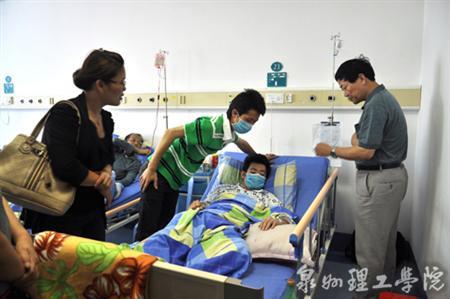 5000元去医院探望肖立城同学。校领导对肖同学在校期间的优秀表现表示赞赏,鼓励他要保持乐观积极的心态接受治疗。“三分病情,七分心情”,良好的心态便是一味良剂,能战胜病魔、战胜命运带来的挫折。校领导表示,对于遇到的困难,家属可随时与学校联系,学校将尽全力帮助解决,全校师生将是他坚强的后盾。