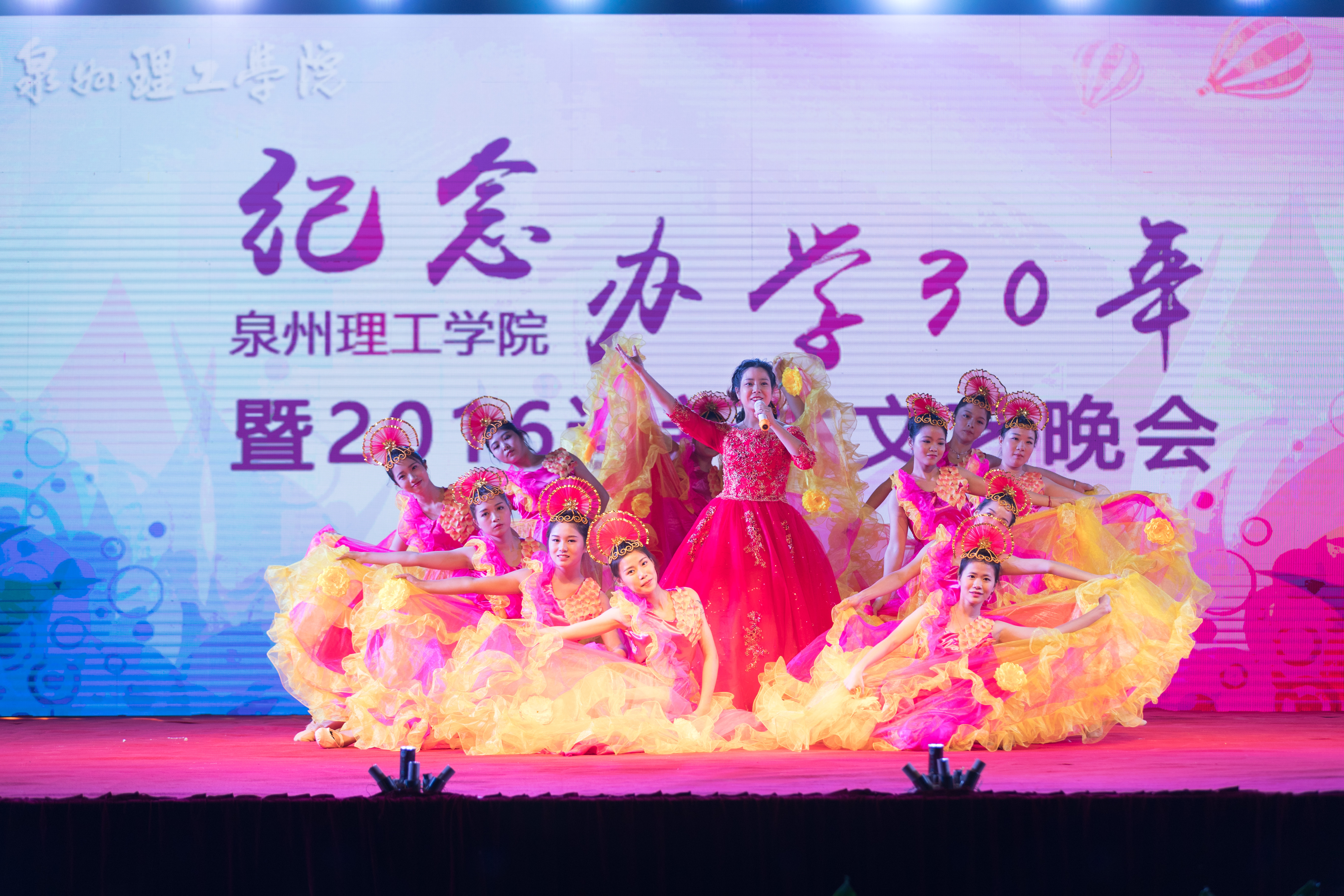 “聚力奋进三十年,最好时光在路上” 纪念学校办学30年暨2016迎新生文艺晚会在学校体育场举行。吴金营董事长、林其天书记及各部门、院系领导老师与部分校友,全体在校生一起观看了晚会。