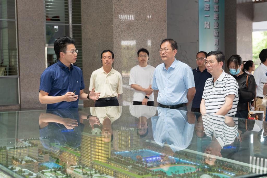 卢明琪一行实地参观调研我校生态校园、艺术传媒学院、能源学院、国科数字产业学院等,听取了学校办学历程、专业群建设、产教融合、科教融汇、社会培训及校园发展规划等介绍,充分肯定我校面向行业企业和社会开展职业培训为社会所做的贡献。