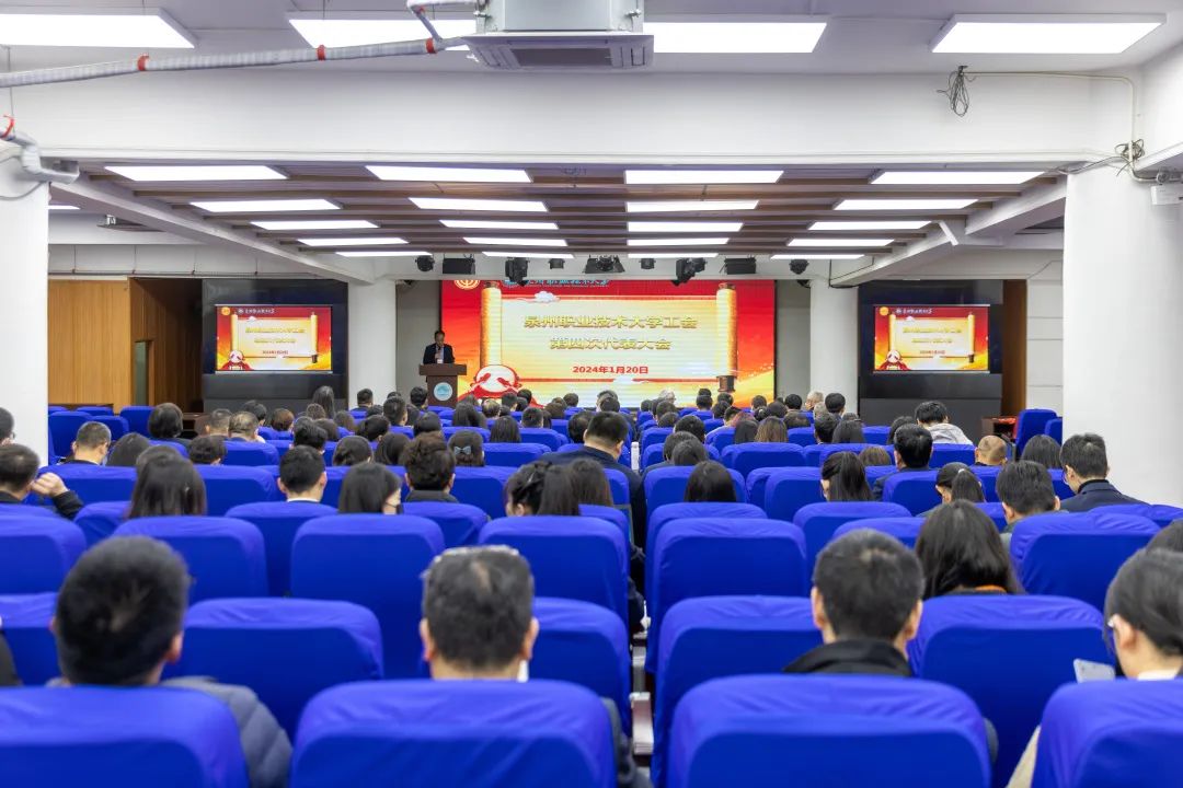 1月20日,泉州职业技术大学工会第四次代表大会和第四届一次教职工代表大会分别在我校A633报告厅隆重召开,学校创办人/董事长吴金营、泉大教育基金会理事长杨培琛、校长吴滨如、校党委书记傅志雄,校领导林其天、来永宝、吴建生、姚丹、蔡金佩、张建军、林文艺、张文协、苏康敏、王巨斌及工会会员代表、教职工代表出席开幕式。大会由校党委副书记、副校长蔡金佩主持。