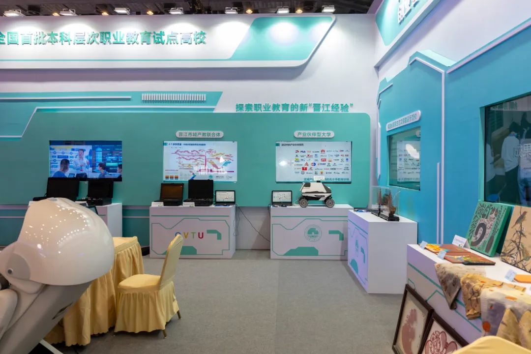 我校展区集中展现学校近年来发展建设成果,采用实物、图文、视频等多种形式相结合的展示方式,全方位、立体地展示学校“产业伙伴型大学”、晋江市域产教联合体(国家级)、生态校园、非遗技艺传承等方面的建设成果。众多领导、嘉宾、展商在我校展区驻足参观交流,对我校取得的办学成效给予肯定。