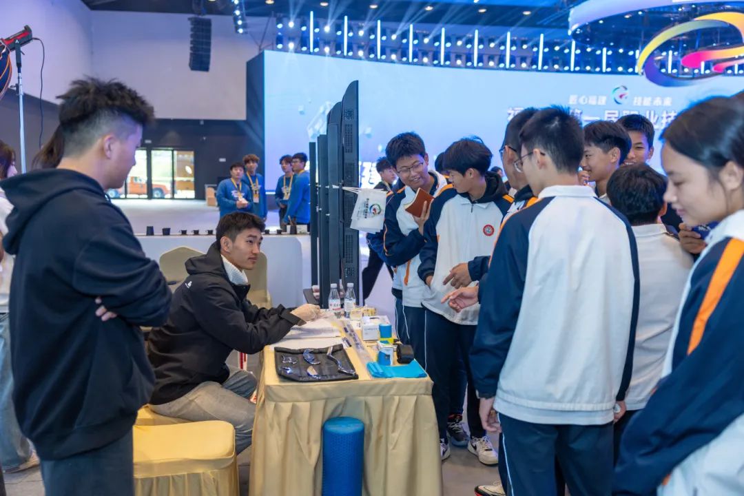 休闲体育专业师生在现场展示运动损伤风险筛查、运动康复等专业技能,吸引了众多观众驻足体验。现场,师生们还细心地为参访嘉宾做运动损伤风险筛查,帮助他们规避运动受伤风险,让大家体验了技能创造美好生活的真实场景。