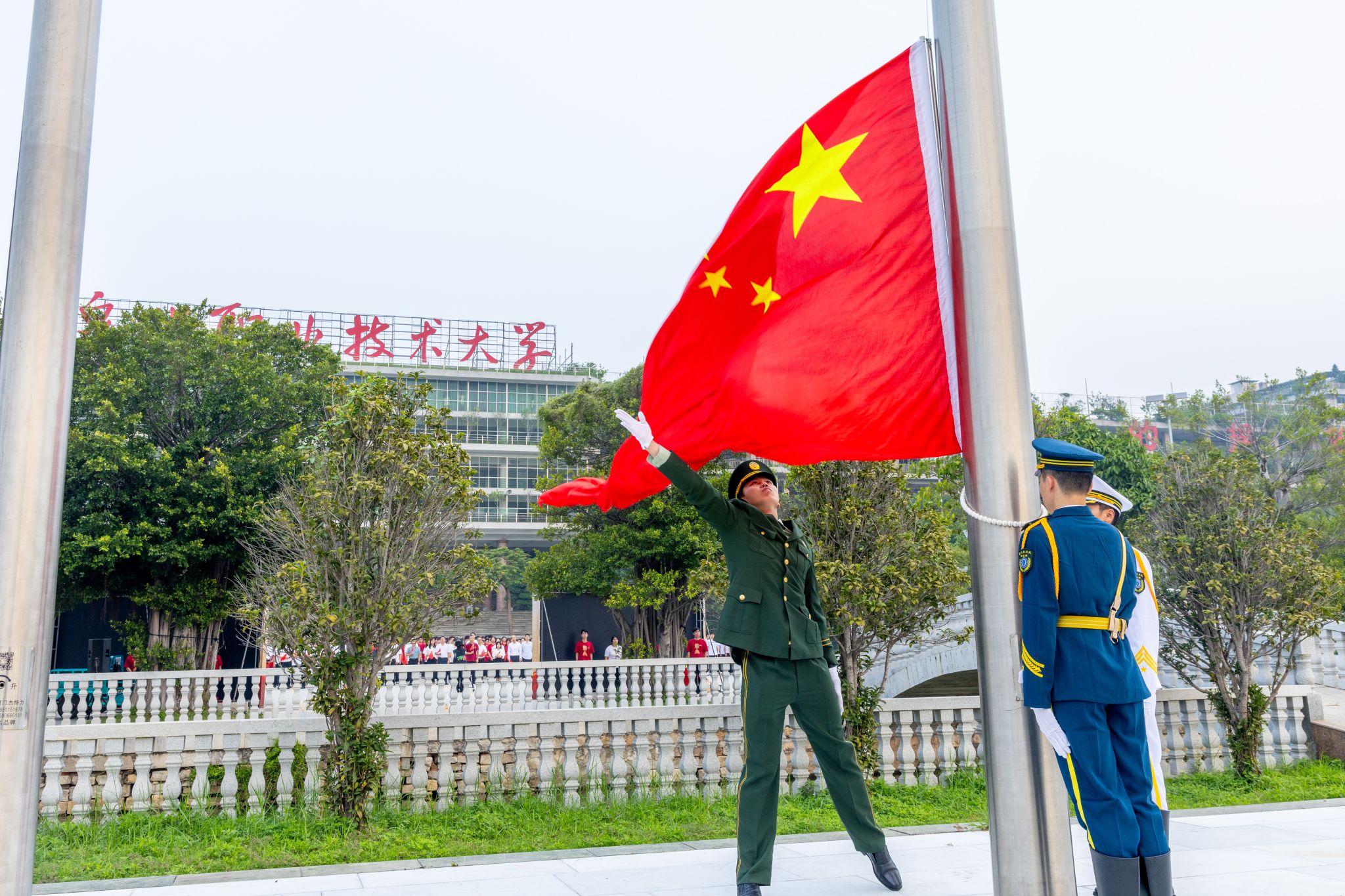 “80年前,中华儿女用忠诚与坚韧赢得民族独立;今天,泉大青年要以奋斗与担当续写复兴华章!”傅志雄在国旗下讲话,结合抗战精神与学校39年办学初心,向全体师生提出三点期许。