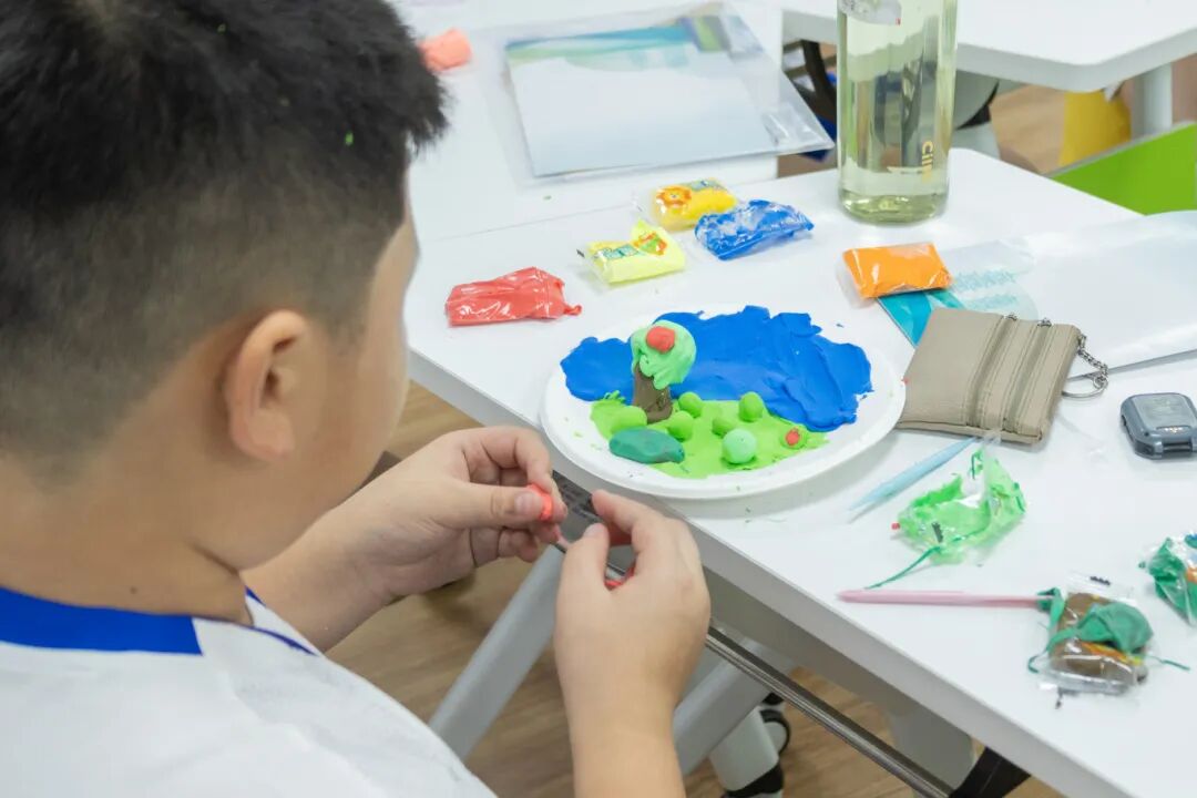 开营首日,一场别开生面的心理团建活动便打破了陌生感,“桃花朵朵开”破冰游戏迅速点燃现场氛围;报纸建塔”挑战加深团队协作,“夏日粘土奇遇”环节为活动增添了无限创意与乐趣。随后的非接触式心理互动测评,帮助团队老师了解营员情况,为夏令营活动提供参考。趣味运动会上更是热闹非凡。足球保龄球、摸石过河、纸杯搭搭……营员们为团队荣誉拼搏,陈少聪赢得比赛后与队友相拥:“一起努力的感觉真好!”