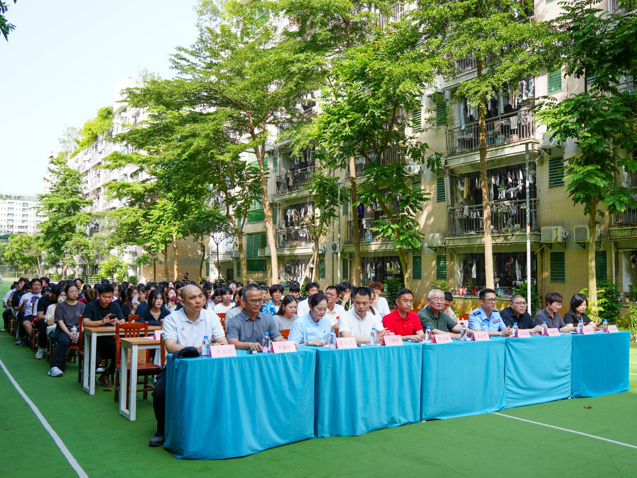 晋江市内坑镇政法委员、副镇长丁诗铃,晋江市公安局内坑派出所教导员吴海呈,晋江市中西医结合医院门诊部副护士长张银凤,学校党委书记傅志雄,校务顾问、马克思主义学院首席专家来永宝,学生工作处、后勤保卫处、各书院及相关工作人员参加开幕式。