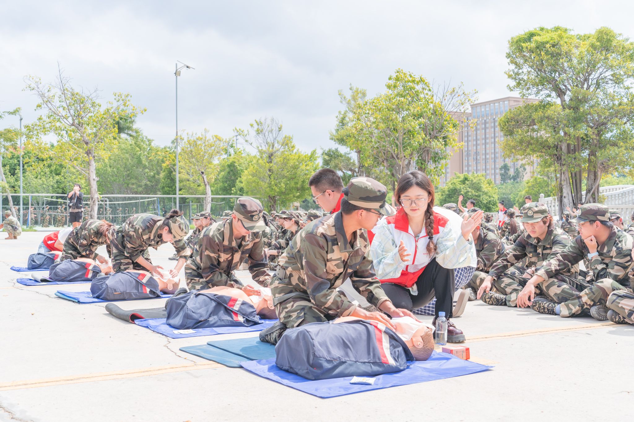 此次培训采用“军训+生命教育”的融合模式,将急救课程纳入军训必修环节,通过“短时高频”的集中训练,让新生在接受军事化训练、锤炼意志品质的同时,深刻感受生命的珍贵与守护生命的责任。