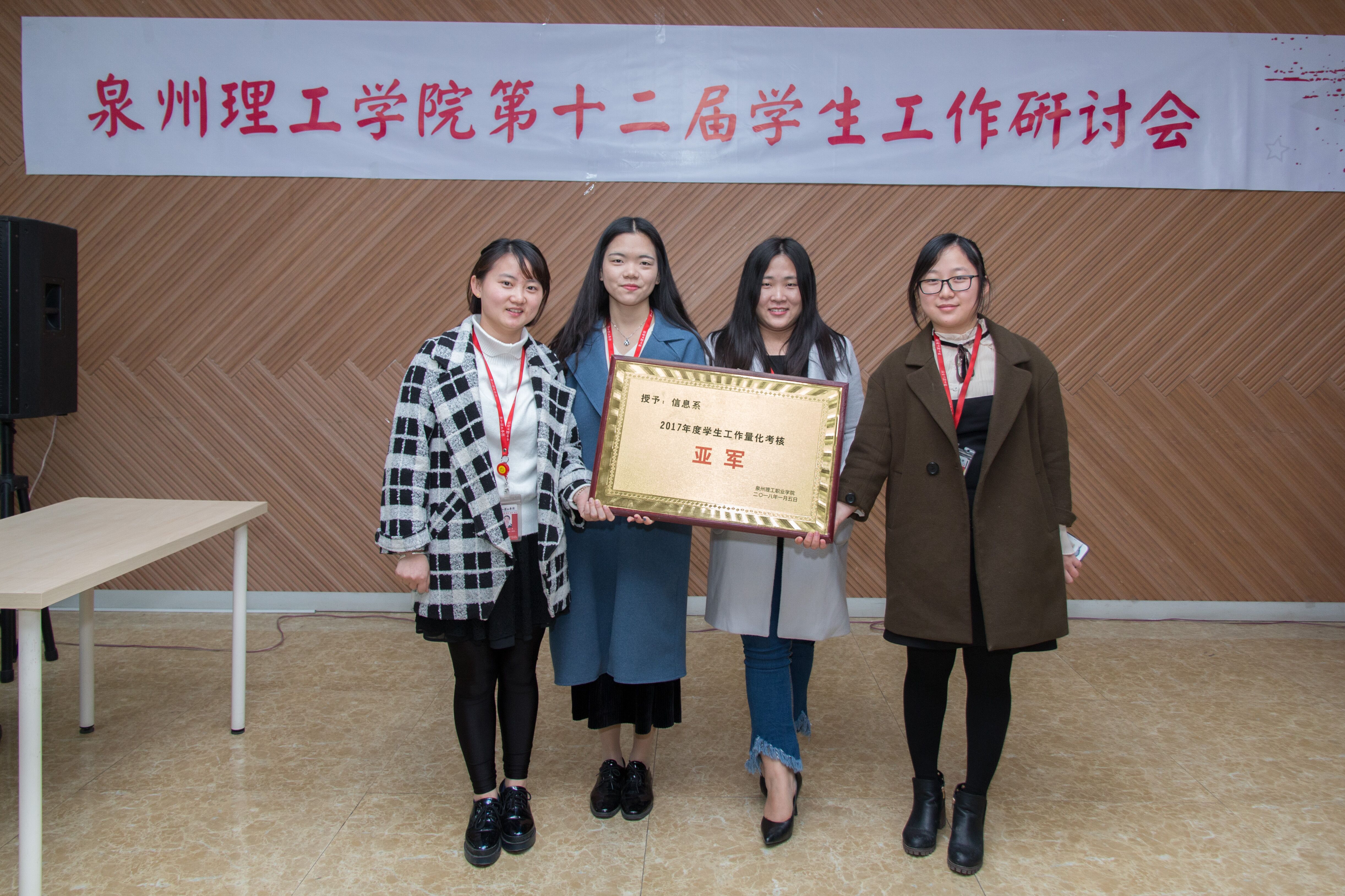 经过激烈的比拼,个人赛部分:我系苏新萍老师获得三等奖,王艳苹老师获得优秀奖;信息系活动2017年度学生工作量化考核亚军。