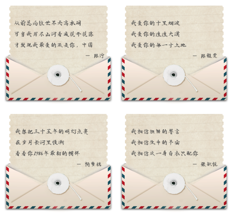 从古至今,从李思源笔下对家国之情,到世人口中对保家卫国之人之情,到白居易笔下对父母之情,再到周恩来、杨绛先生笔下对爱人之情,无一不体现出一个将温柔刻在骨子里的中国。为弘扬中华优秀传统文化,进一步增强广大青年学生对“四个自信”的价值认同,以文化人以文育人,8月8日至8月14日,四实书院团委、四实书院学生会面向全体学生举办了“时光作渡 三行成书”三行情书征集大赛,依托三行情书形式,让广大学生述说心中所爱。