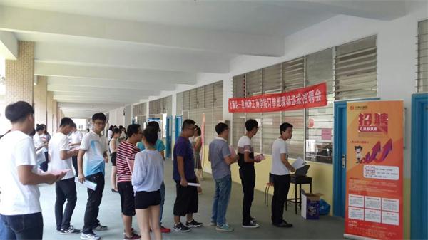 学生排着长队等待面试