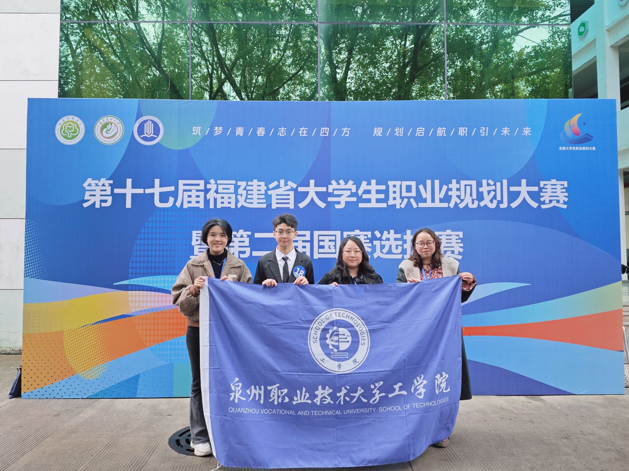 ▲ 陈彬(左二)参加第十七届福建省大学生职业规划大赛暨第二届国赛选拔赛